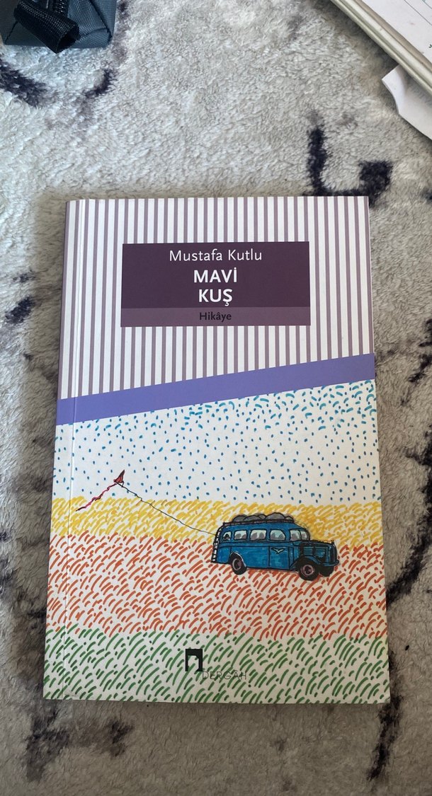 Mustafa Kutlu'nun "Mavi Kuş" adlı romanı, üzerinde mavi otobüs çizimi olan kapak tasarımıyla hikayeler içerir.