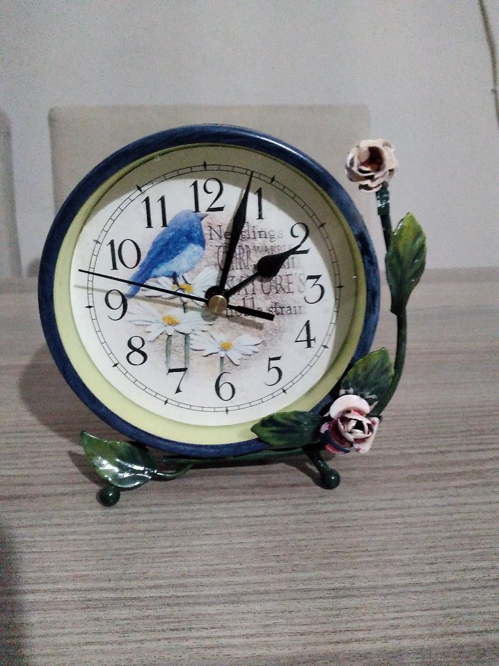Mavi Kuş ve Çiçek Desenli Masa Saati