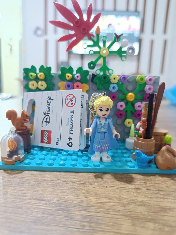 Mavi taban üzerinde Disney Frozen Elsa figürlü Lego anahtarlık