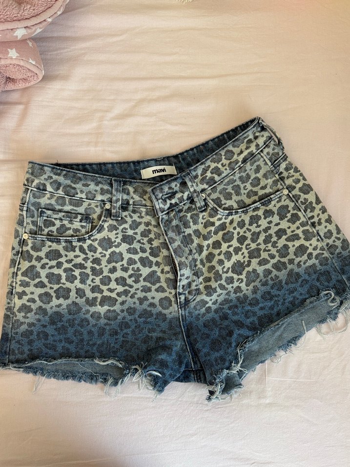 Mavi leopar şort