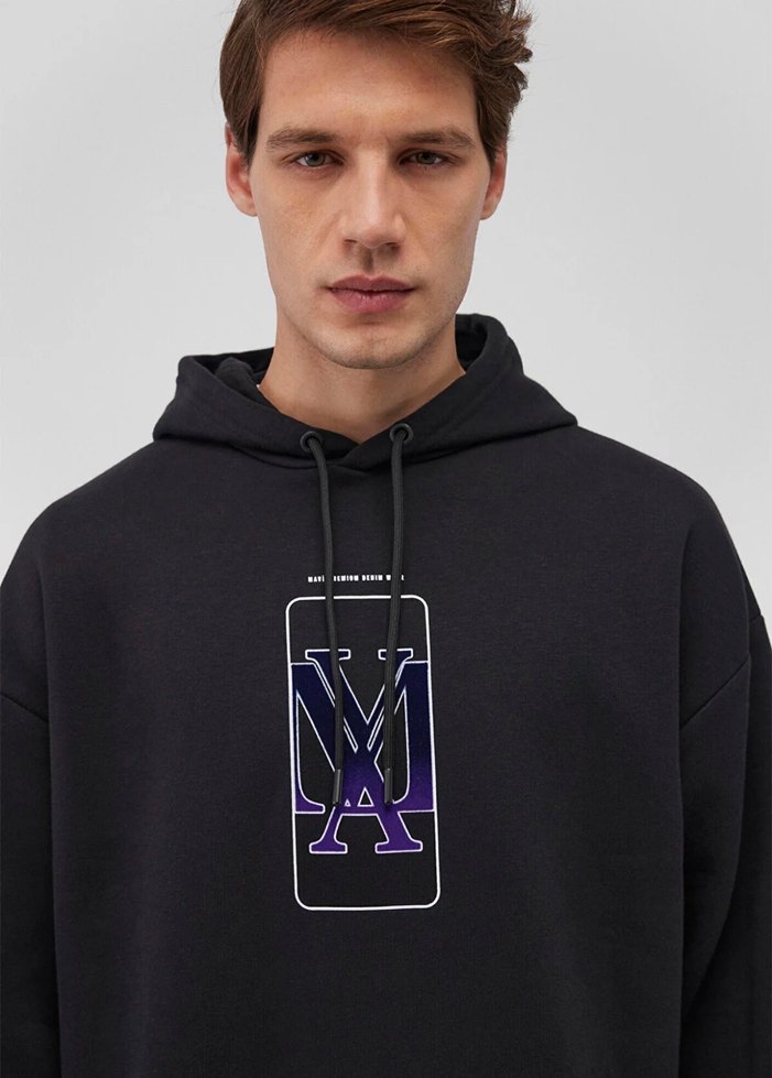 Siyah renkli, oversize kesime sahip, ön tarafı baskılı sweatshirt. Yuvarlak yaka ve uzun kollu, yumuşak ve sıcak kumaştan, günlük kullanım için uygun.