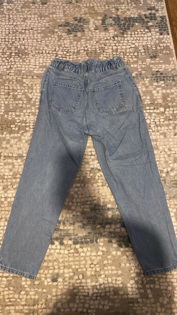 Mavi denim kumaştan, loose fit kesim ve normal midi boy uzunluğa sahip kadın kot pantolon. Düz ve gündelik tarzıyla rahat ve şık bir görünüm sunar. İki arka cep bulunur.