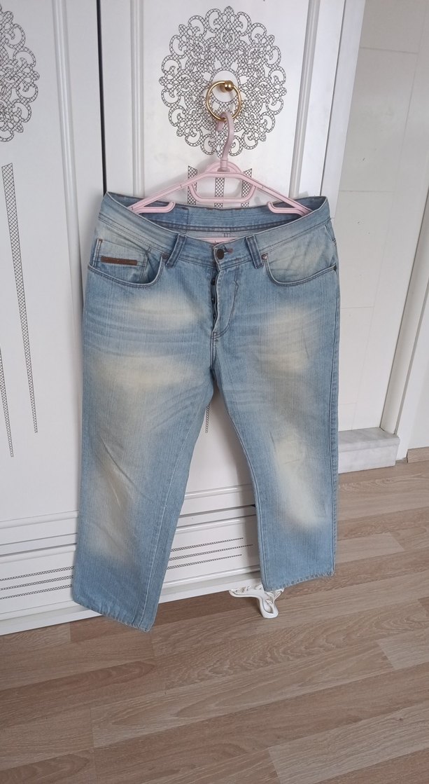 Gündelik kullanım için rahat, desen içermeyen loose fit kısa boy mavi denim pantolon. Sokak stiline uygun.