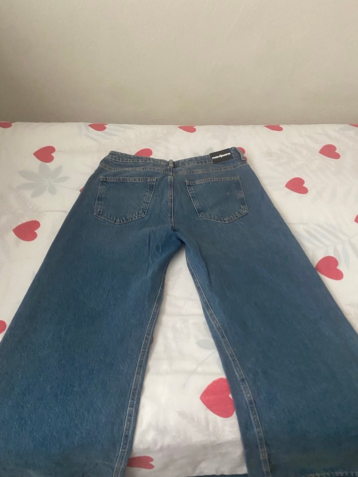 Mavi renk, loose fit kesim ve midi boy kot pantolon. Günlük kullanıma uygun, rahat ve şık sokak stili için ideal hiç giymedim