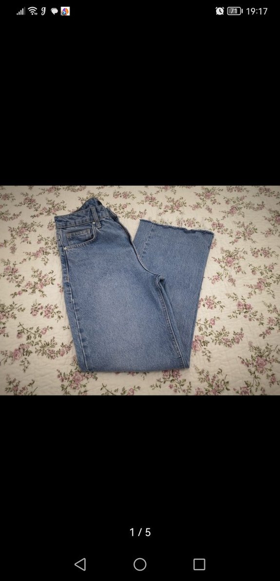 Mavi denimden üretilmiş, rahat loose fit kesim ve midi boyda, hafif batik desenli kadın kot pantolon. Günlük sokak stili için ideal, zahmetsiz şıklık sunar.