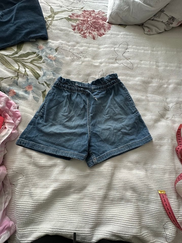 Pastel mavi renkte, rahat loose fit mini denim şort. Günlük kullanıma uygun, desen içermeyen ve zahmetsiz şıklık sunan tasarım.