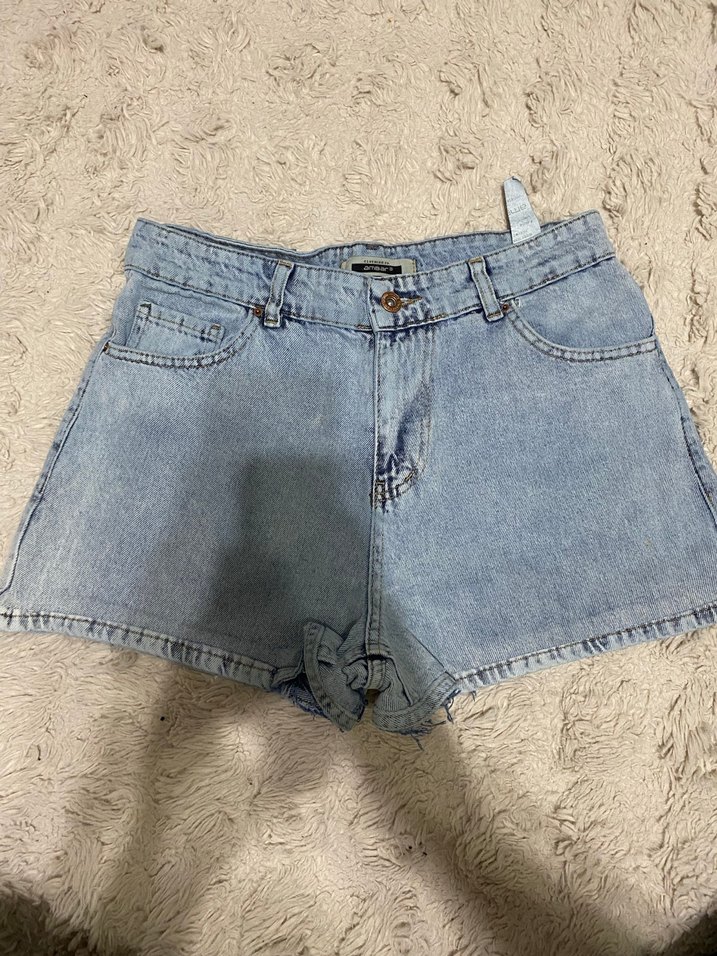 Günlük kullanım için pastel mavi renkte, bol kesim mini denim şort. Rahat ve şık sokak stili tasarım.