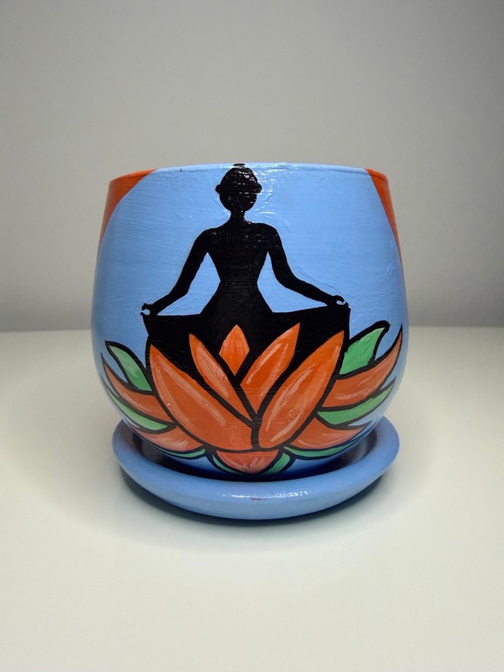 Mavi Lotus ve Meditasyon Desenli Saksı