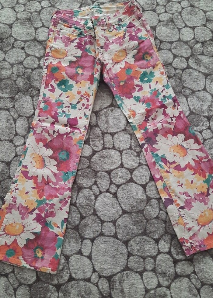 Mavi marka kot pantolon çicek desenli