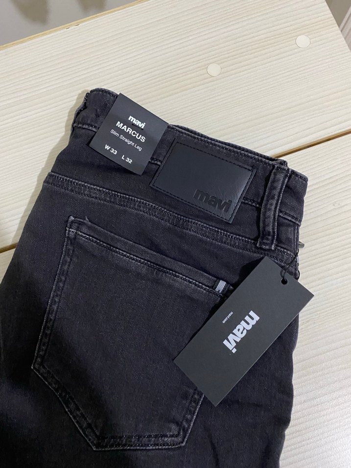 Mavi markasına ait Marcus, regular fit kesim 33w 32l beden Erkek pantolon etiketi üzerinde.