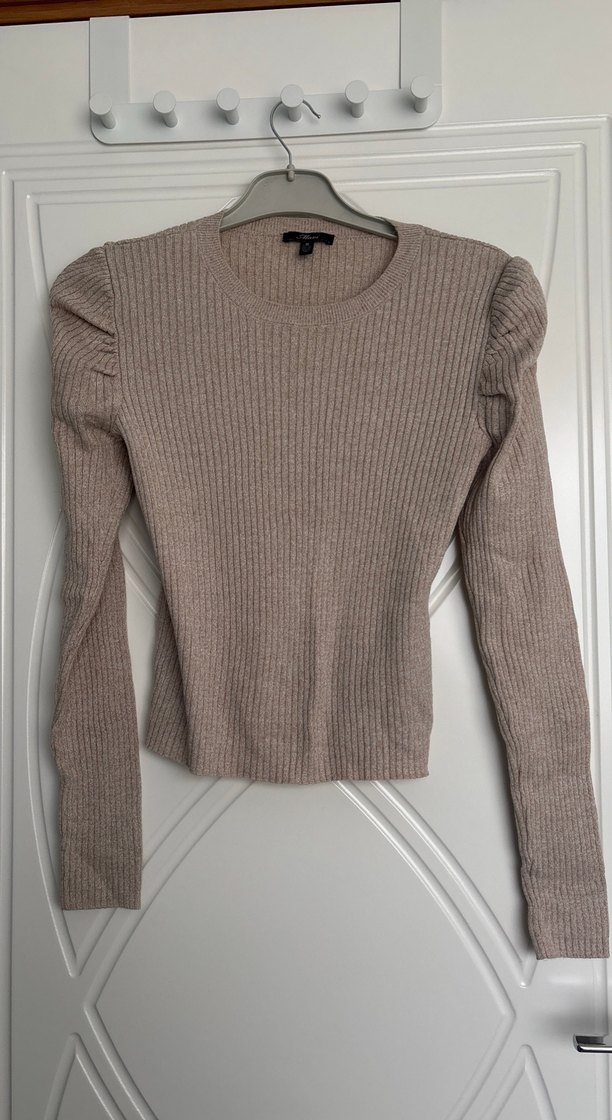 Bej renkte, uzun kollu, yuvarlak yaka ve fitilli örgüden yapılmış kadın kazak. Rahat ve günlük kullanıma uygun, sade tasarımlı bir parça.Hiç kullanılmadı defo sorun yok.Mavinindir.