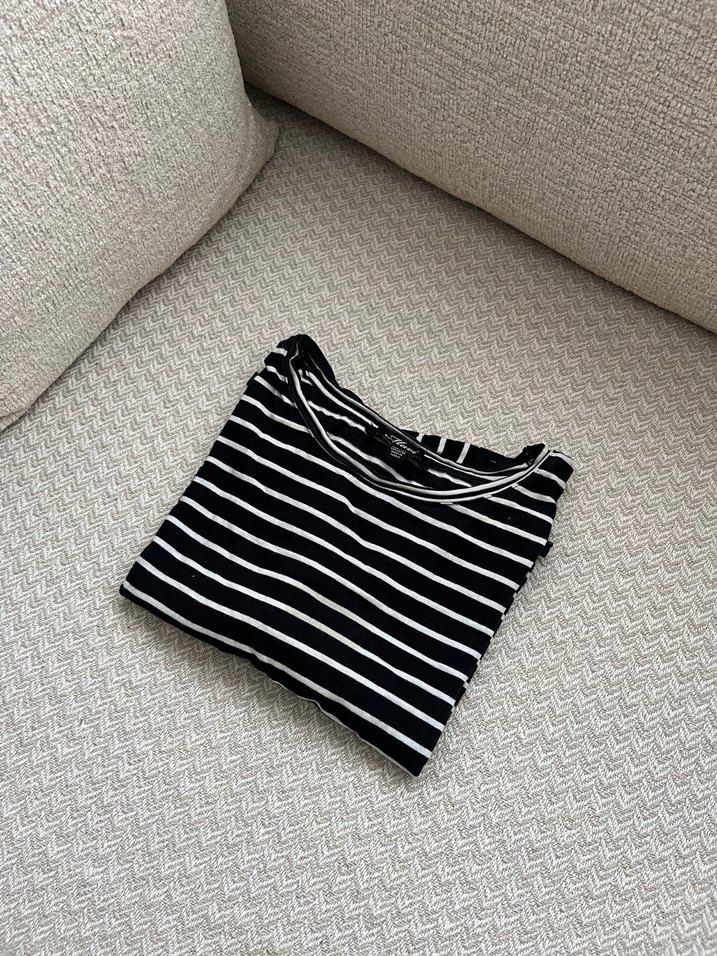 Mavi marka çizgili tişört. Kilo aldığım için satıyorum