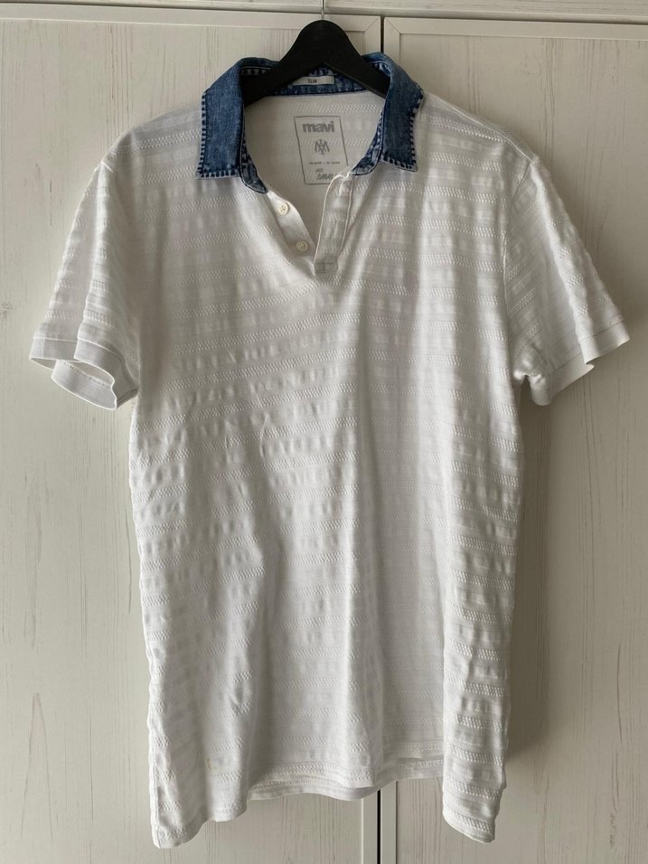 mavi marka Düğmeli Beyaz Denim Yaka Erkek Polo Tişört