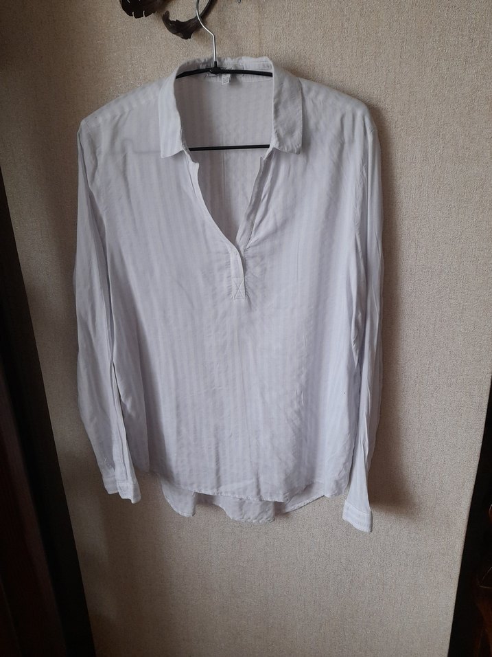 Düğmeli ön kısmı ve kolye yaka detayı olan, hafif keten kumaştan yapılmış, bol kesim uzun kollu çizgili kadın gömleği. ölçüler ürünün üzerinde var 40 42 bedene uygun ölçüleri dikkate alın lütfen