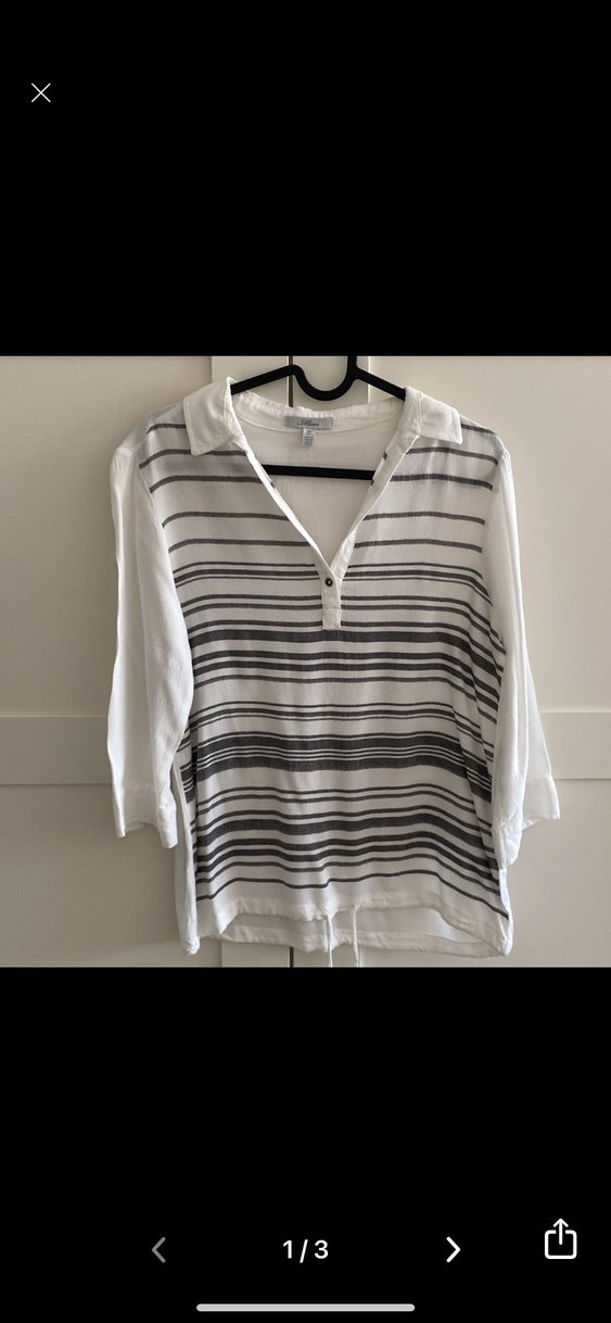 Mavi marka Düğmeli Gri Çizgili Beyaz Kadın Gömlek