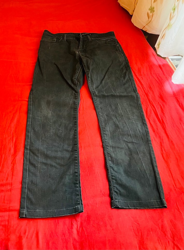 Bazı bölgelerinde beyaz çizgiler mevcuttur, fotoğraflarda da görebilirsiniz. Ölçüleri fotoğraf olarak ekledim. Beden: 31/32