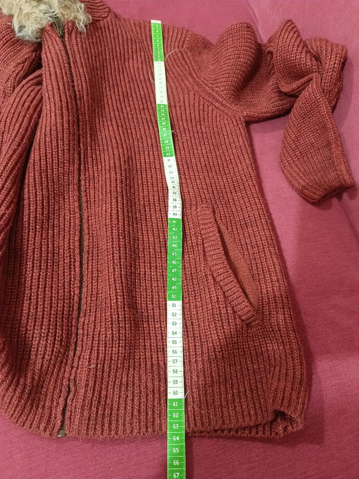 l beden ama xl XXL ye kadar olur esnek yapısı var kiremit rengi iyi durumda sorunu yok kullanılan üründür kapüşonludur