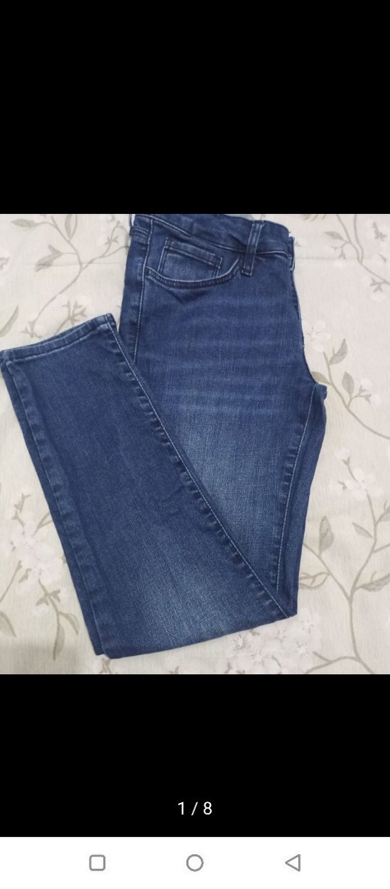 Hafif likralı tok bir kumaşı mevcuttur.Düşük beldir . Herhangibir problemi yoktur tertemizdir. 48-52 kilo arasinda sayılı kullanildi.Mavi jeans de 24 beden Xs denk gelmektedir. Boy 90 cm Paça 15 cm Bacak arası 20 cm