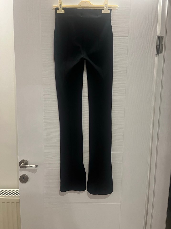 Siyah renkli, sentetik kumaştan üretilmiş, midi boy ve ispanyol paça kesim kadın spor pantolonu. Rahat ve şık bir görünüm sunar.