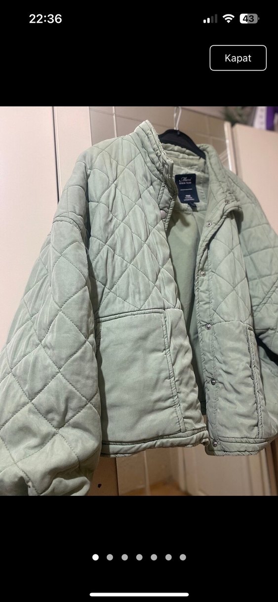 Düğmeli, su yeşili renkte, uzun kollu kadın ceket. Notch yaka ve gevşek kesim ile rahat, midi boyda, günlük kullanıma uygun sıcak tutan kumaştan. Orjinal mavi markadır 2-3 kez kullanıldı sıfır ayarında s m beden için ÜRÜNÜN EN SON ETİKET FİYATI 2.700 dü ona göre değerlendirin lütfen
