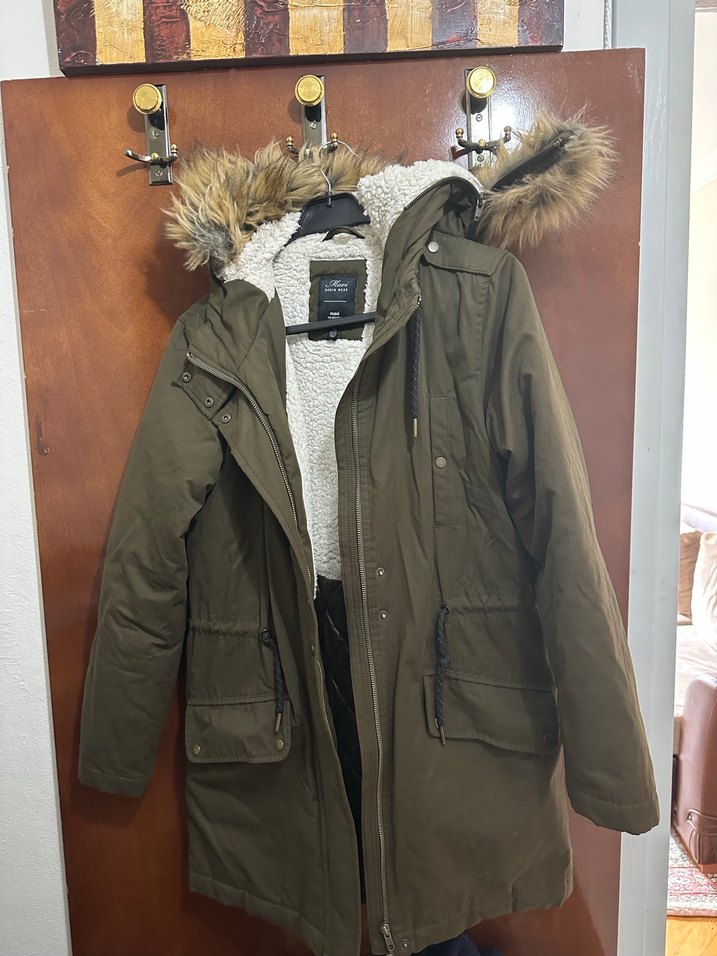 Mavi marka xs beden iki kol arası 50 cm boy 80 cm sorunsuz içi yarım kürk kapşonlu küçük geldiği için satışta