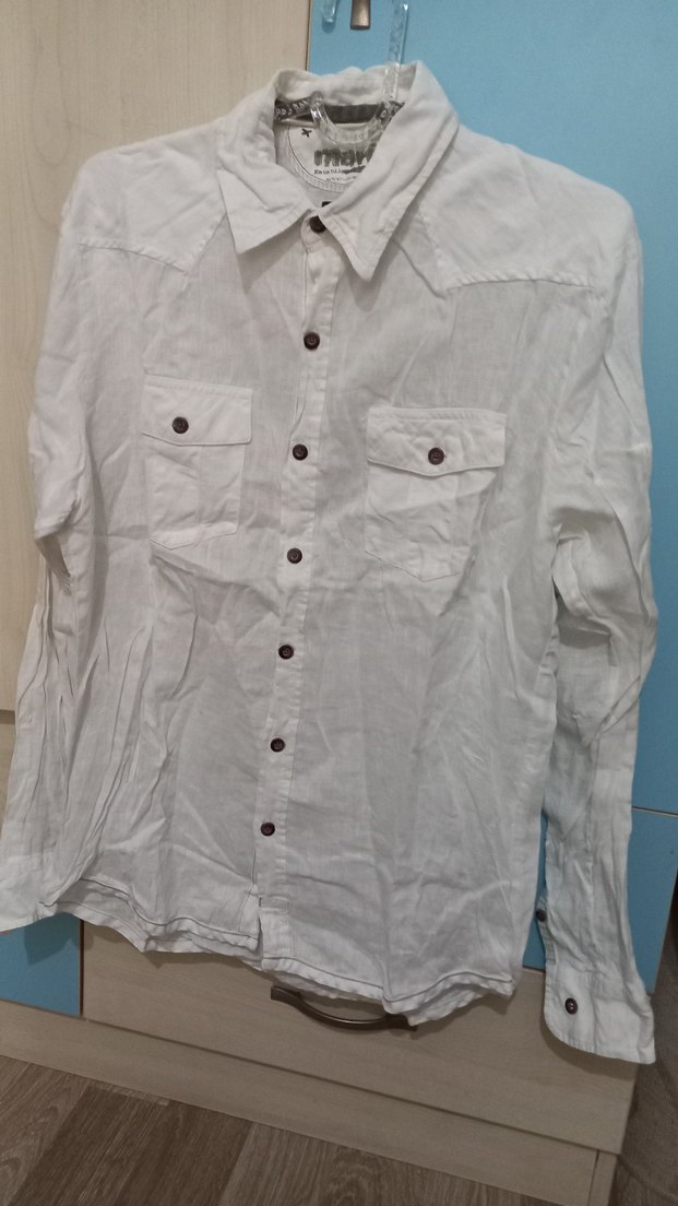 erkek beyaz keten gömlek M beden uyumlu