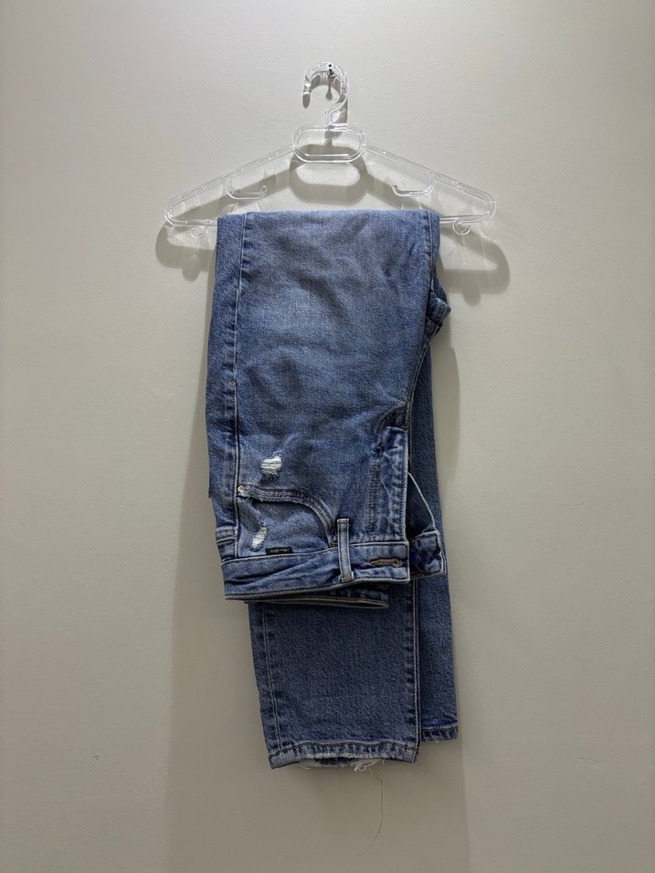 Mavi kot pantolon, mom jeans ve günlük rahat sokak tarzı için uygundur.