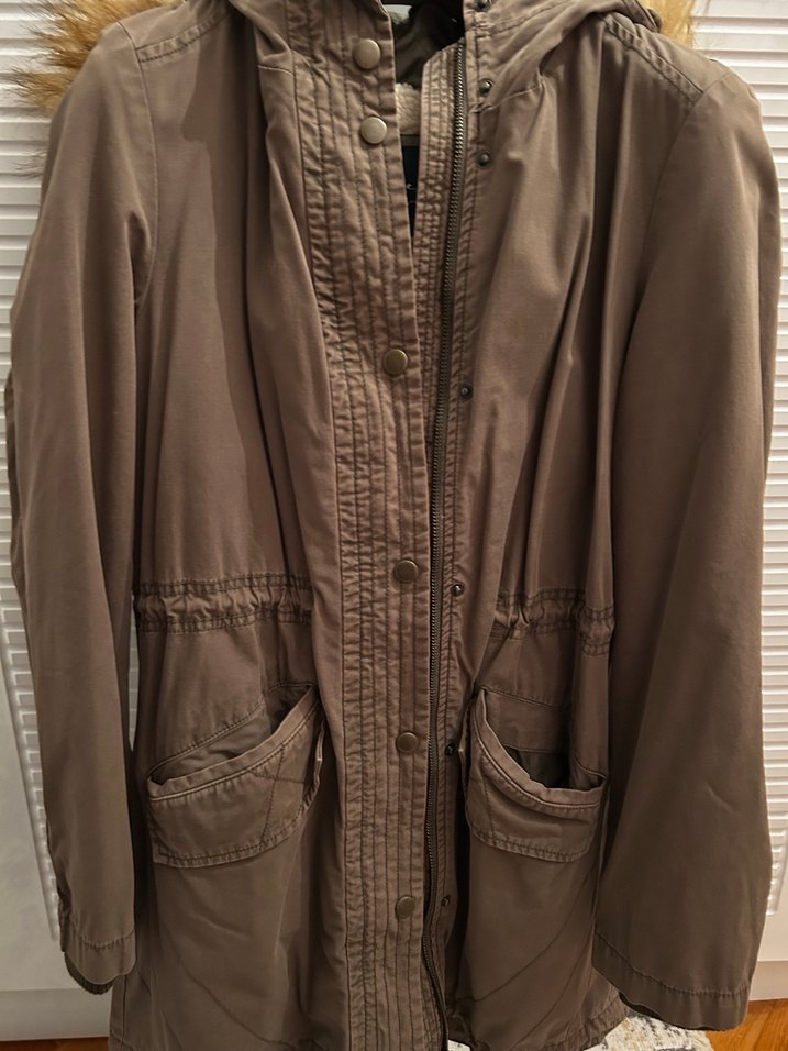 Düğmeli içi suni kürkiü çıkarılabilen şekilde , cep detaylı, uzun kollu, hakki midi kadın ceket. Az giyildi iki parçada yıkanılır çok temiz ve hiçbir sorunu yok