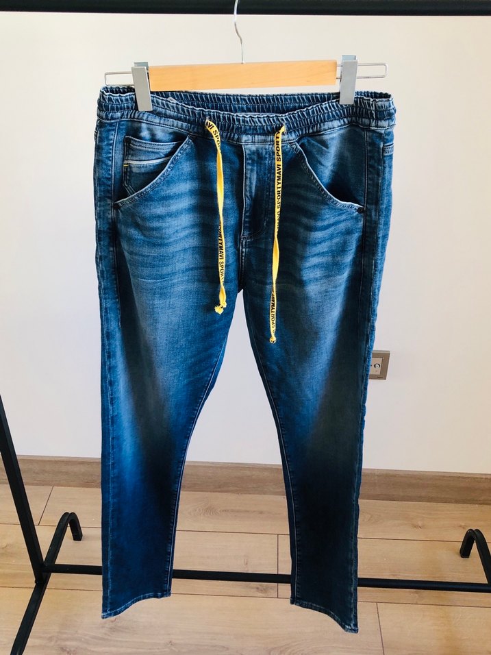 Oldukça rahat mavi marka 32 beden paça genişliği 16 cm boy 107 cm