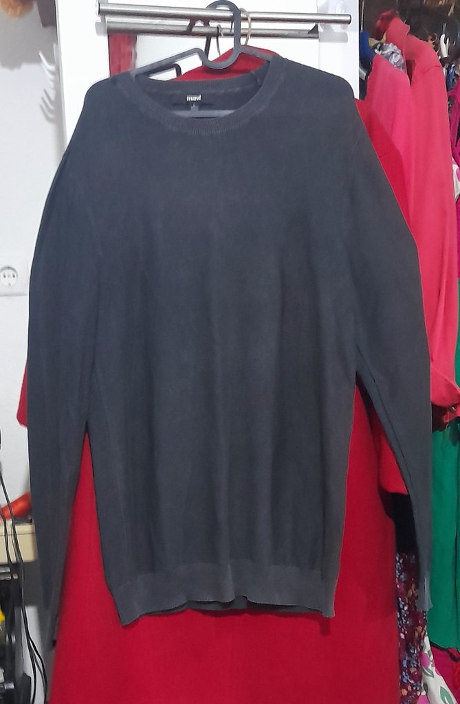 Siyah renkte, uzun kollu ve yuvarlak yakalı erkek sweatshirtü. Rahat kesim ve yumuşak, sıcak tutan kumaştan üretilmiştir. Günlük sokak stiline uygundur.eni 54cm boyu84cm