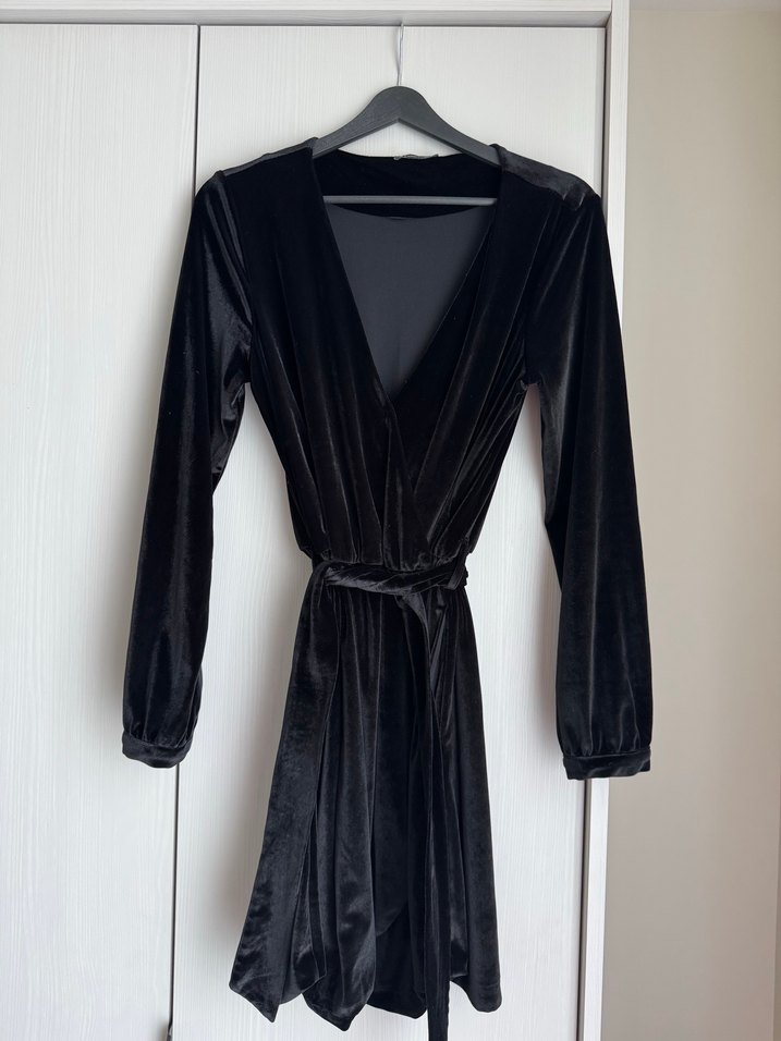 Mavi marka Siyah kadife V Yaka Gotik Mini elbise