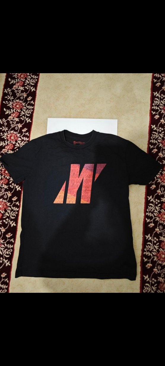 Düz siyah renkte, baskılı desenli, kısa kollu, bisiklet yaka, dar kesim mavi marka erkek tişörtü. Pürüzsüz sentetik kumaştan üretilmiştir.