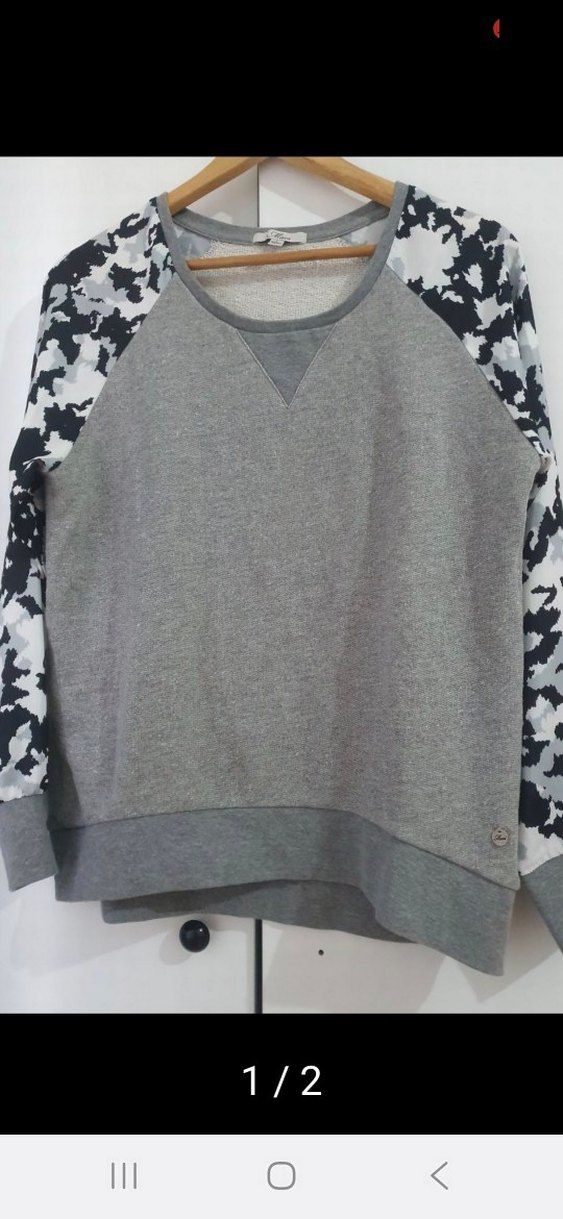 Gri renkte, baskılı uzun kollu, bol kesim ve yuvarlak yakalı kadın sweatshirt