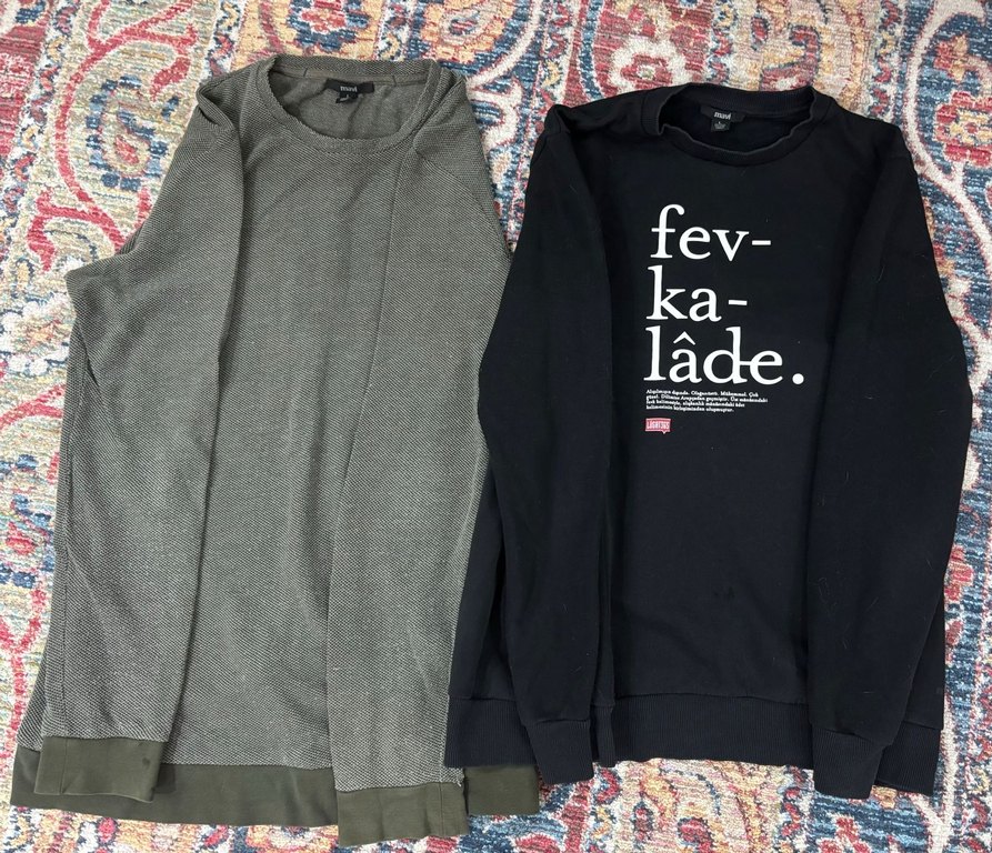 İki ürün birlikte satılıyor. Her ikisi de L beden, mavi marka.