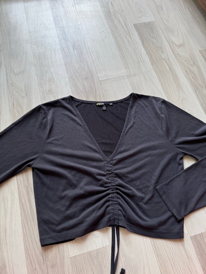 Mavi marka V Yaka Önden Büzgülü Gri Bluz