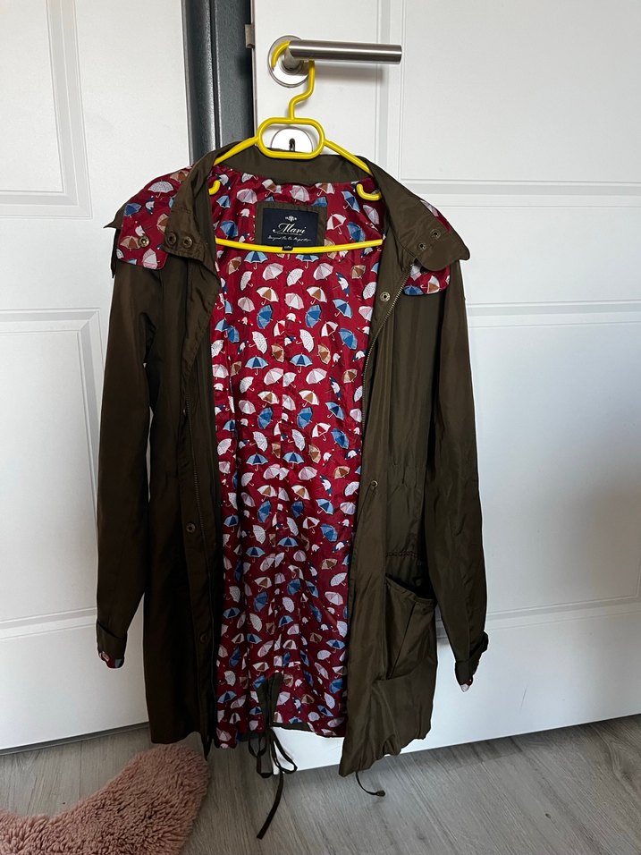Mavi den aldığım (Orjinal) bu yağmurluk haki renginde. Hem fermuarlı hem düğmeli. Şapkası var. İçi desenli kırmızı renginde. Sadece son fotoğrafta cep kısmının çıt çıtı cıktı. Görünüşte herhangi bir kusur yok. Yaptırmadım rahatsız etmediği için. Temiz ürün. S beden.