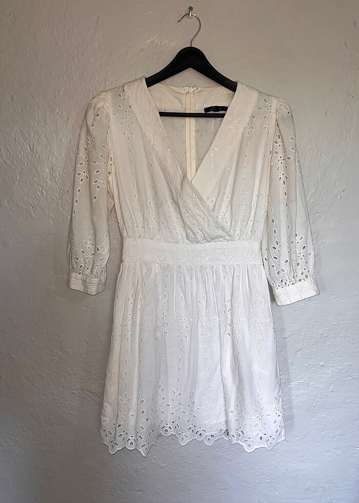 Mavi markalı beyaz elbise