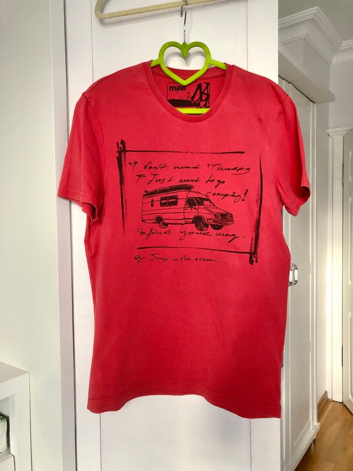 Fotoğrafları sola kaydırarak ayrıntıları inceleyebilirsiniz . Pamuk kumaştan, kısa kollu, baskılı kırmızı tişört. Göğüs çevresi 94 cm,tişört 67 cm. Pamuklu dokusu rahatlık hissi verir.