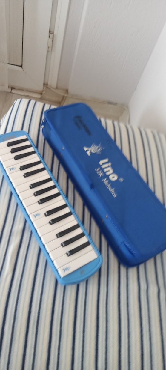 Açık mavi melodika, taşıma çantası ile birlikte geliyor, taşınması ve çalması kolaydır. tertemiz deformasyon vb yok sağlam sadece hortumu yok hijyen açısından yenisi alınmalı