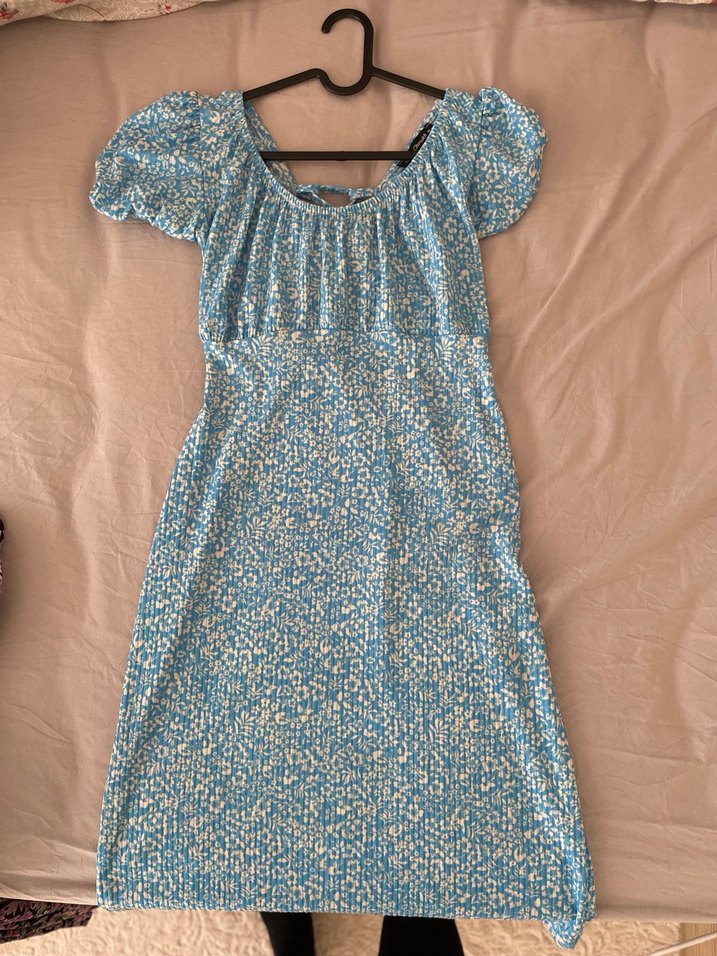 Mavi Midi Bohem Kısa Kollu Elbise