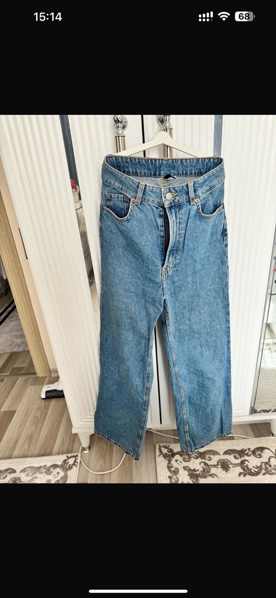 Mavi midi boy, bol kesim kadın kot pantolon. Kot kumaştan yapılmış, tokalı detaylı. Günlük rahat kullanıma uygun normcore tarzda. ️