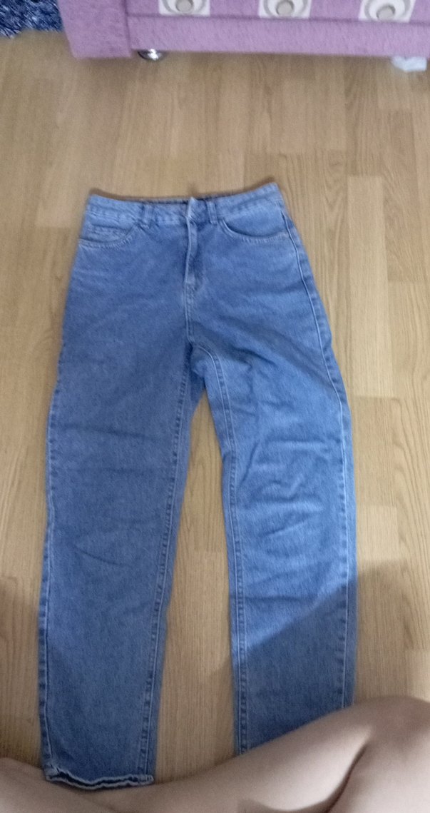 Pastel mavi renkte, bol kesim ve midi boy kot pantolon. Günlük sokak stili için rahat ve şık bir tercih.