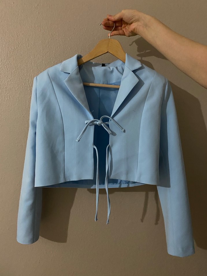 Bebe mavisi kalçayı örtmez bağlama detay vatkalı ceket
