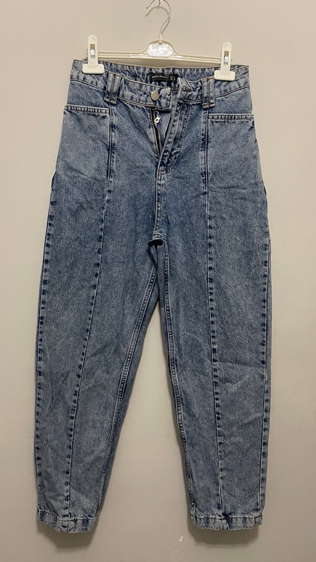 Mavi- gri arası renktir S bedendir havuç kesimdir cepleri farklı bir tarz şeklindedir Sadece fermuarı bozuktur