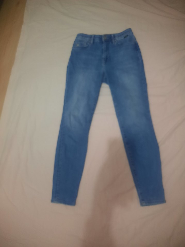 Bu mavi denim pantolon, rahat ve düzenli kesimiyle günlük kullanım için uygun, midi boyda ve zahmetsiz şıklık sunar.