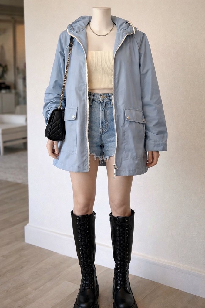 Pastel mavi renkte, bol kesim ve yüksek yakalı midi boy denim ceket, günlük rahat ve şık stil için uygundur. Desensiz ve sade tasarıma sahiptir. Çok minim sarımsı bir leke vardır hemen fermuarın orada ama fotoğrafta belli olmuyor. Kuru temizlemeyle gidebilir. Çok minik deformelere sahiptir. Onları da çektim.