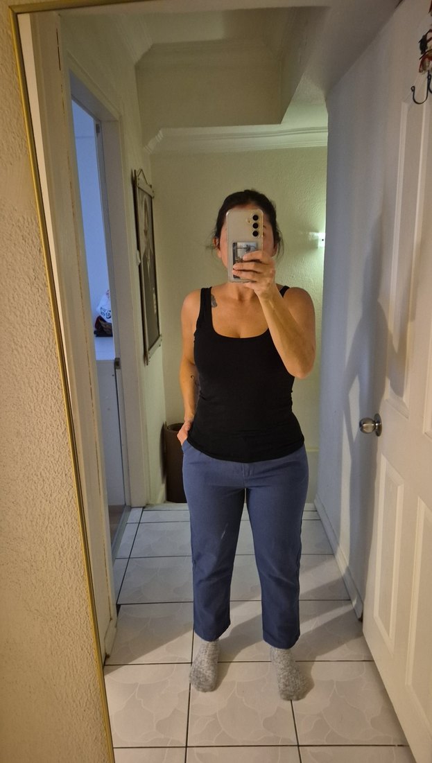 Koyu gri denimden, midi boy kesim ve fitted tarzda, gündelik kullanıma uygun rahat ve şık boyfriend keten pantolon.