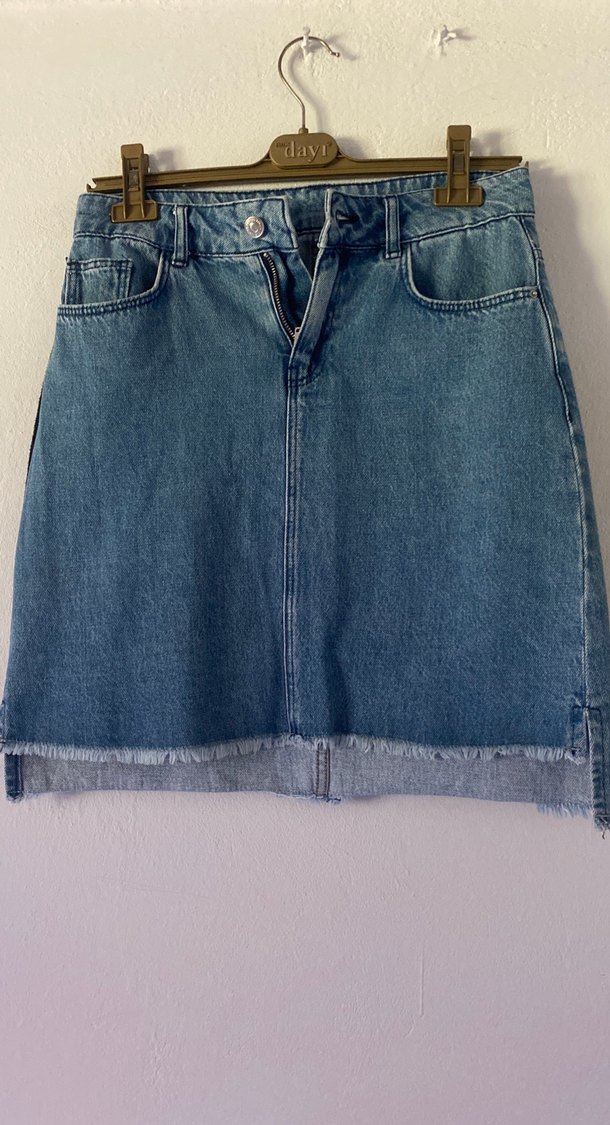 Mavi denim midi etek, bol kesim ve sade tasarıma sahip. Düğme ve fermuar detaylı, günlük kullanıma uygun rahat bir sokak stili parçası. Effortless chic görünüm sunar.