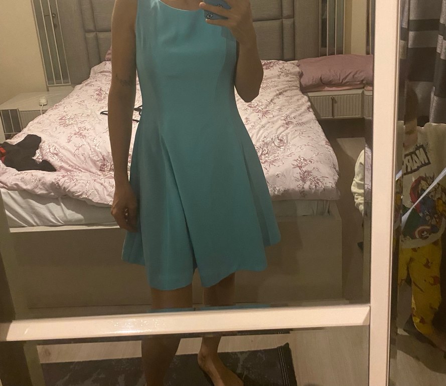 midi boy, vücuda oturan elbise. Kolsuz ve çağdaş stilde, romantik akşamlar için uygun. Sıkıntısı yok 36 beden ama rengi çok hoş