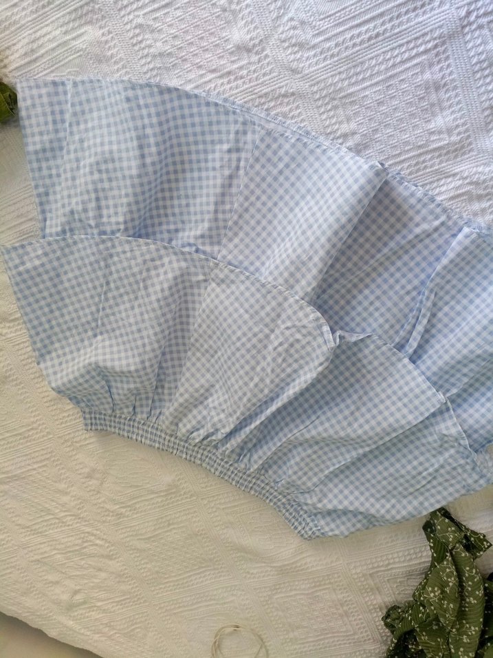 Pastel mavi renkte, fırfırlı detaylı, rahat kesim midi etek. Yumuşak pamuk kumaştan, günlük kullanıma uygun.